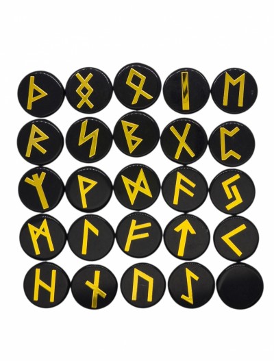 Komplektā ietilpst 25 rūnas, diametrs 17 mm.